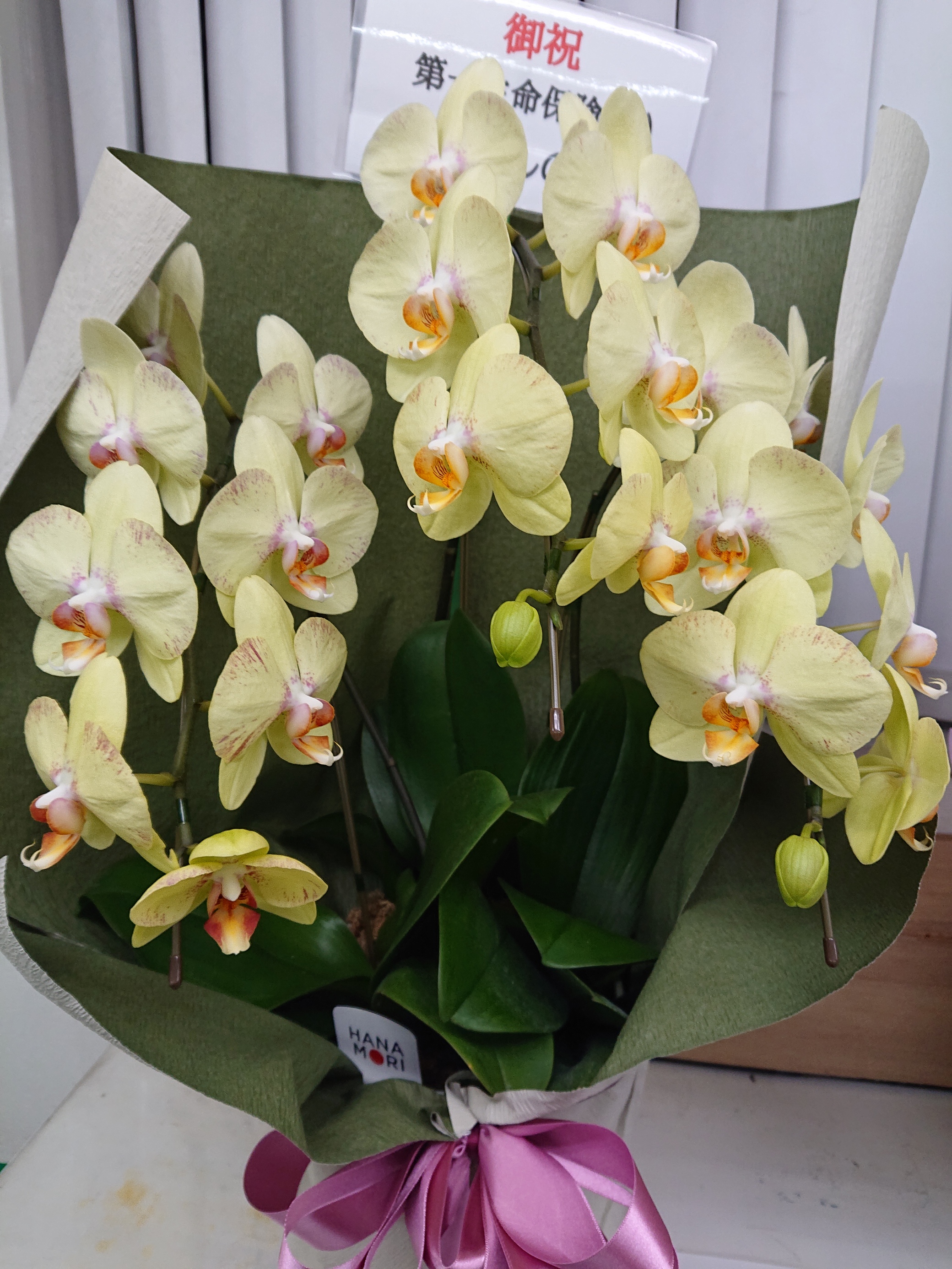第一生命の金子様から頂きました❗ 白ではない胡蝶蘭もあるのですね👀‼️ ありがとうございます☺️ ウメ
