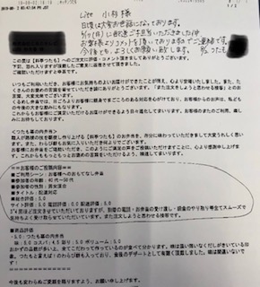 お客様より配送先での対応について、お褒めの言葉を頂きました!