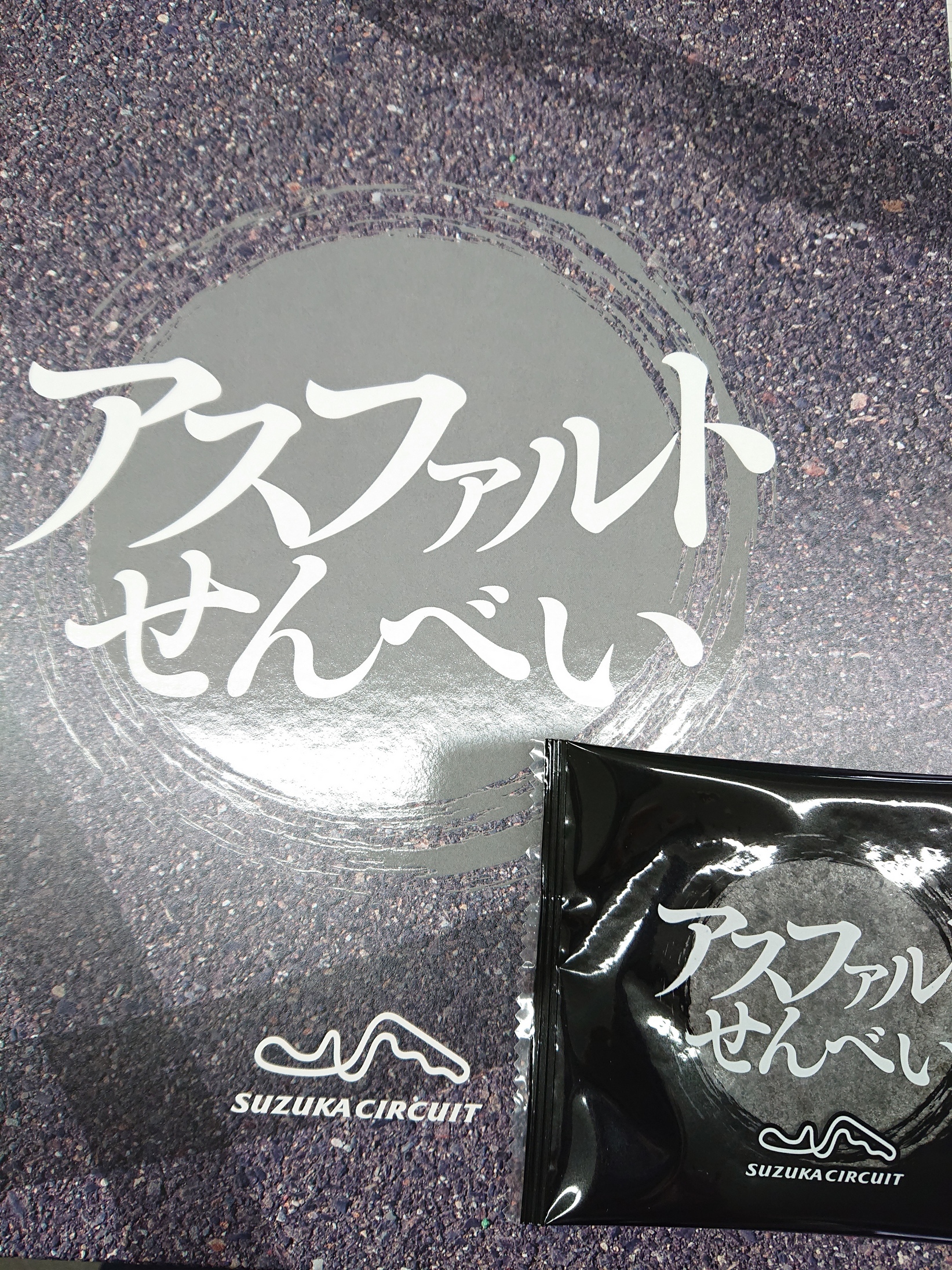 cちゃんから頂きました🎵 鈴鹿サーキットのお土産です。 サーキットならでは?アスファルトせんべいですよ😉 ありがとうございます😊 ウメ