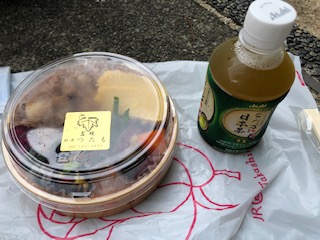 すーさんがつたもさんのお弁当、のびちゃんがなだ万さんのお茶を買ってきてくれました。