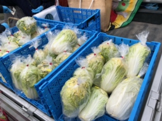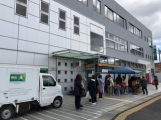朝市&抽選会やっています! 風が強くてめちゃ寒い!