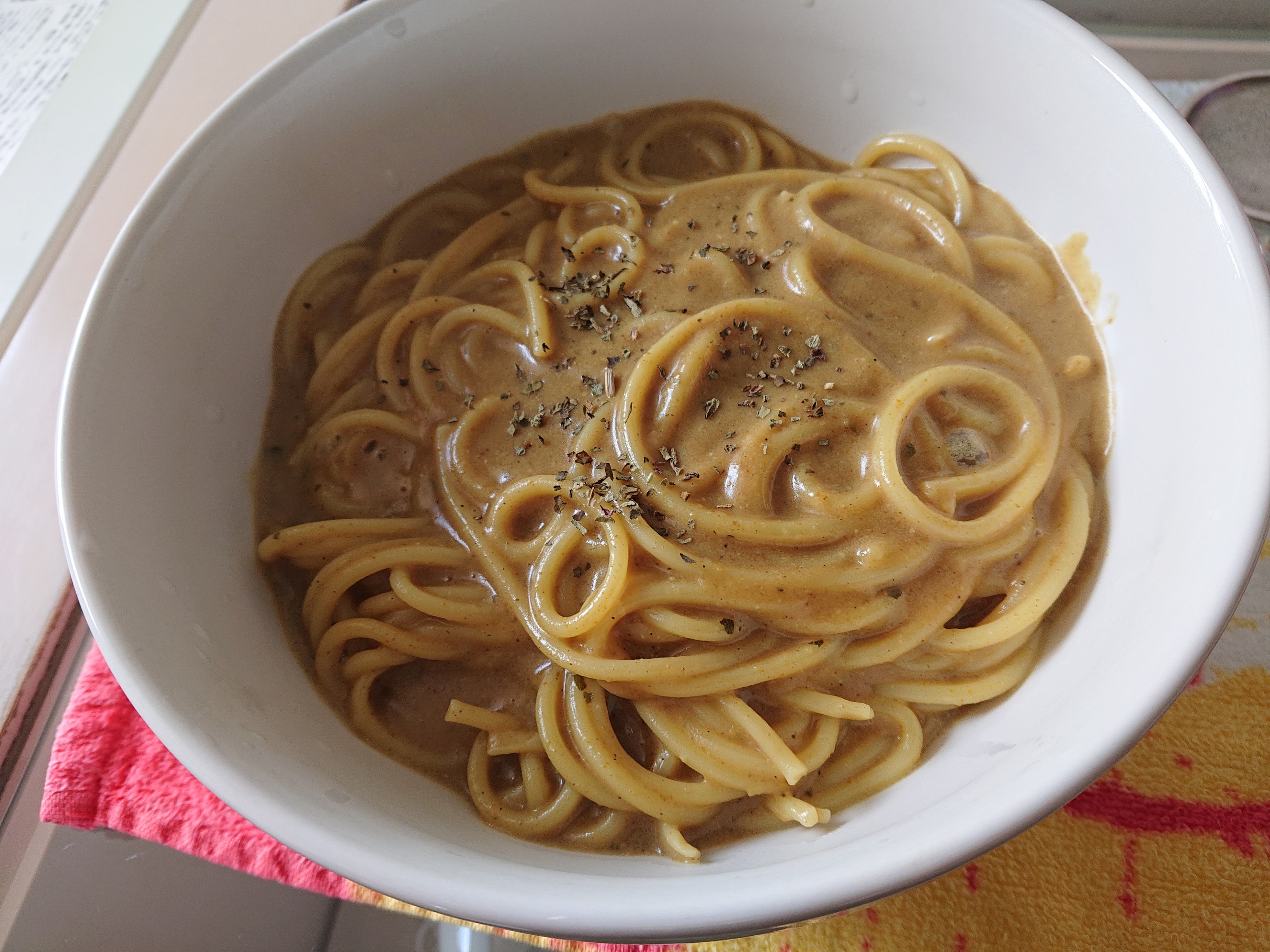 今日は、カレーパスタです😋 豆乳とチーズを入れてスープ風にしたつもりですが、普通のマイルドなカレーみたいになってしまいました… ですが、美味しく頂きました❗ ウメ