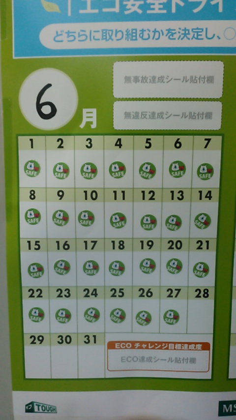 安全運転キャンペーン中、今日はまだシール早いか!今から走る人も十分注意してお願いします!T口