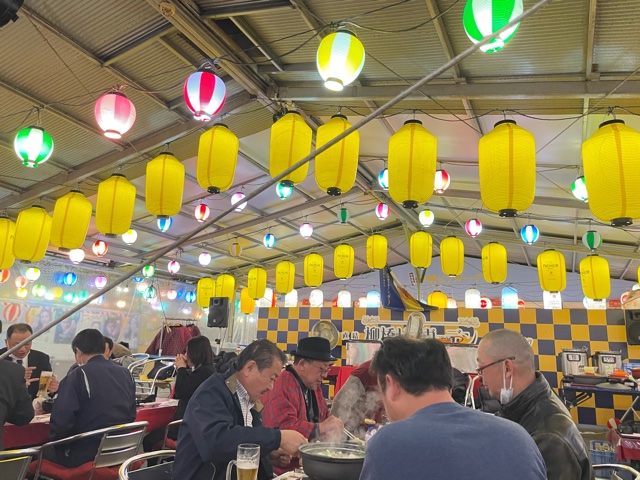 今日はお客様とビアガーデンで忘年会!