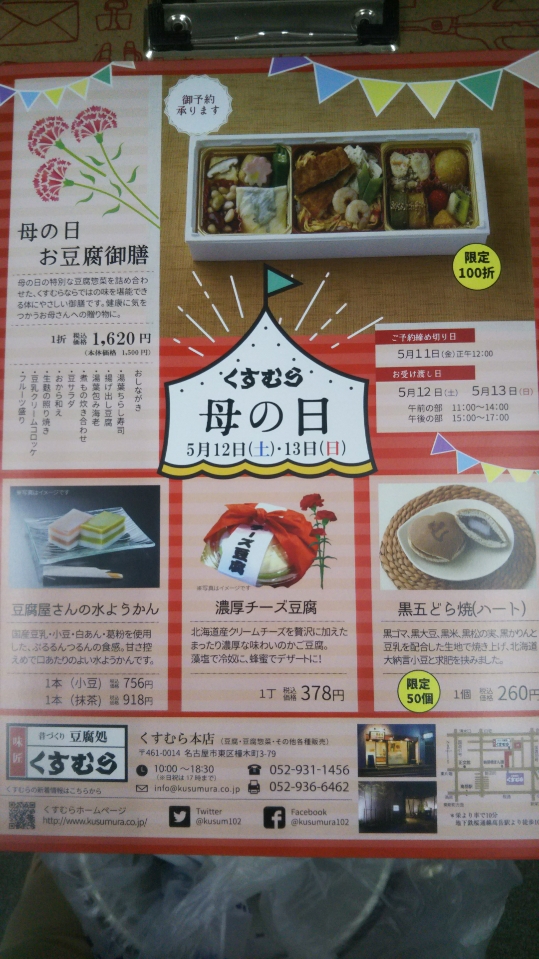 くすむらのお豆腐やさん、母の日の催し物がありまぁす❗️お立ち寄り下さいませ~✨