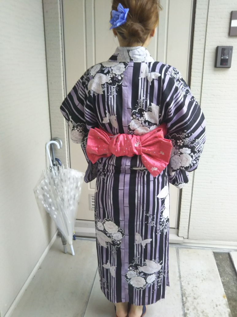 今日は~5年ぶりくらいに娘に浴衣を着せましたぁ・・・・帯のバランスも悪いし下手くそだなぁ💦やり直し~😧