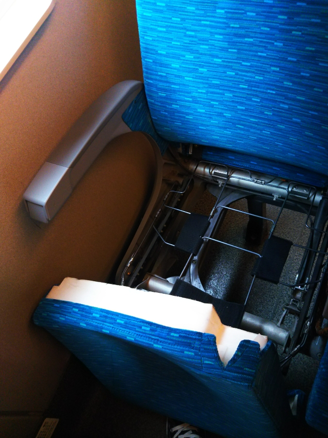 新幹線の椅子、簡単に取り外せますね~👆自己防衛の練習💪
