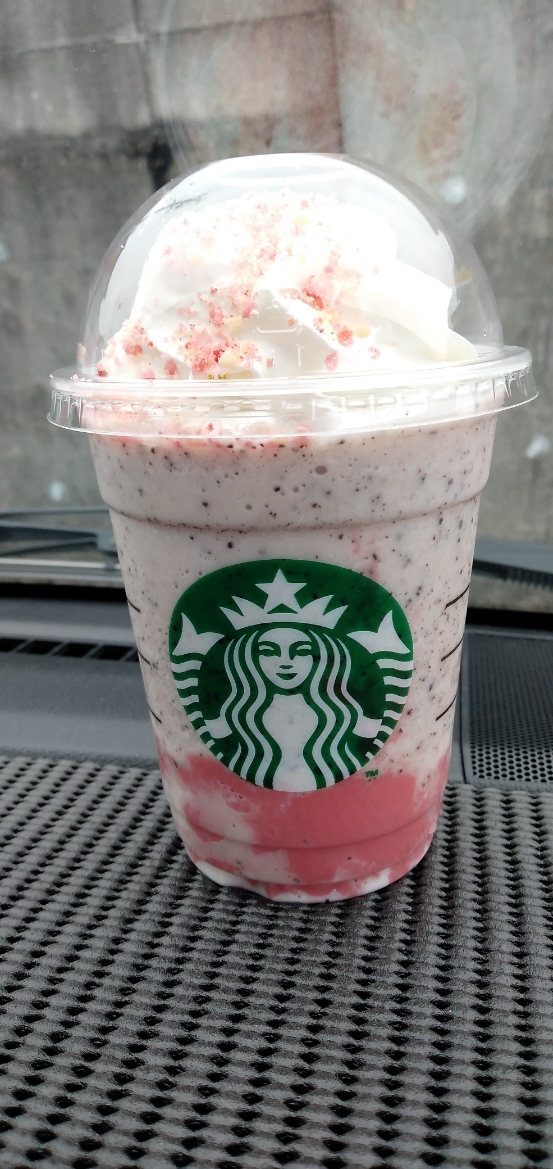 限定のサクラフワリフラチペ~ノ🌸店員さんのおすすめでホワイトモカシロップにチョコレーとチップ追加🍫うんまそっ
