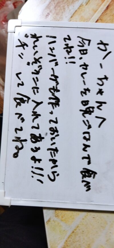 自宅のリビングの、机の上に長女からのメッセージが