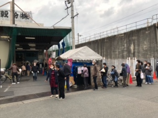 中川区の吉村穀粉さんで20年前から月1で開催されている朝市を見に行ってきました。 広告にも入れているらしくかなりの人が来ていました。 もっと盛り上げたいとの事でキッチンカーや野菜販売の話がありました。 野菜に関しては来月からでも販売して欲しいと。 他にもお話はあります。 キッチン、キッチンカーの完成が待ち遠しいですね! 農楽さん、来月野菜販売どーですか?