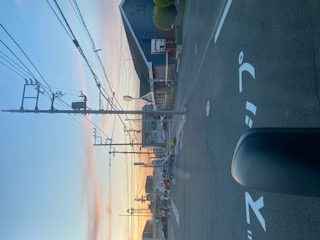 朝焼けが綺麗な神奈川県平塚市に来ています!2トンにて給食センターの現場に扉の搬入!その後東京まで飛びます!