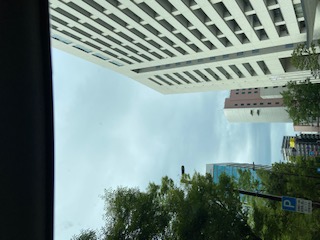おはようございます、今日は福岡県中央区に建設中のホテルへ照明器具の納品です。今の所曇りさっき迄は晴れ間も見えて蝉も鳴いてましたがもう少ししたら降ってくる予報いっぱい降る前に納品終われるかな?やま