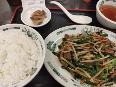 待機のときに秋葉原で食べたレバニラ炒めとっても美味しかったです