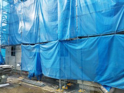 新築アパートにレンガの搬入です