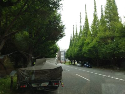 今朝は東京青山に2トン2台でステンレス塗装の三角枠を搬入に来ています